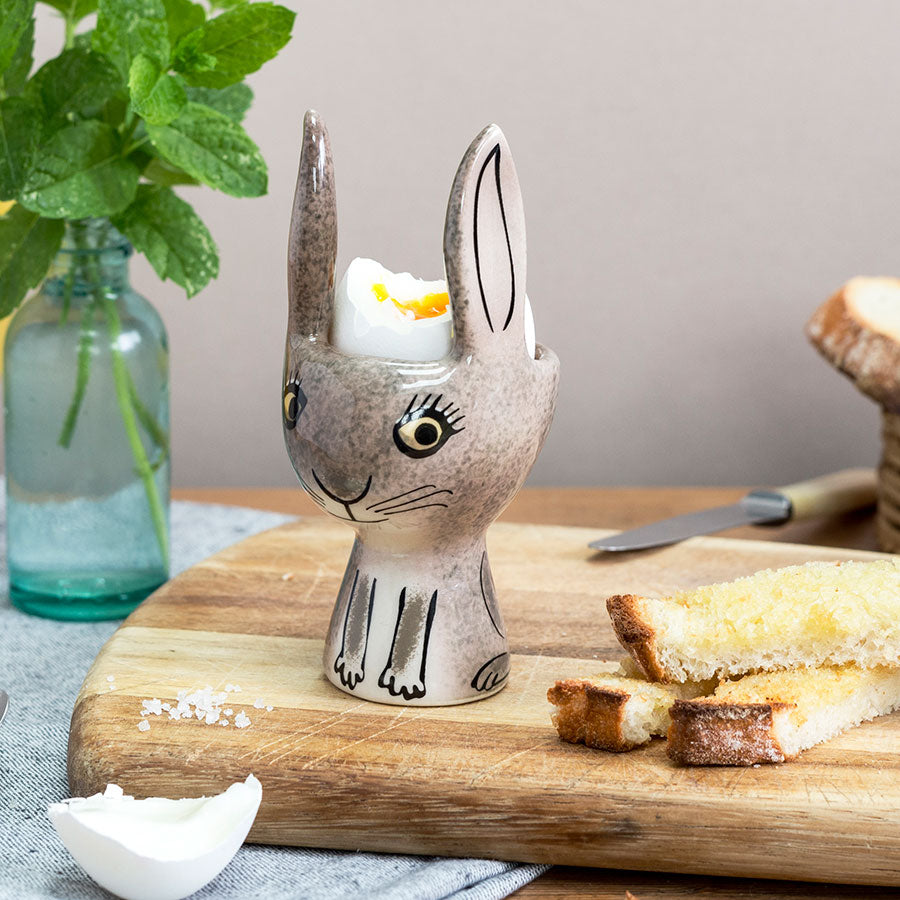 Give your breakfast or teatime egg a touch of wild woodland elegance with this Hare Egg Cup by Hannah Turner. With its tall ears and adorable long eyelashes, breakfast will get a whole lot more entertaining for children and nature lovers alike! Part of the woodland collection by Hannah Turner, Hare joins Hedgehog, Badger, Red Squirrel, Wolf and Wild Boar, bringing some breakfast-time fun!