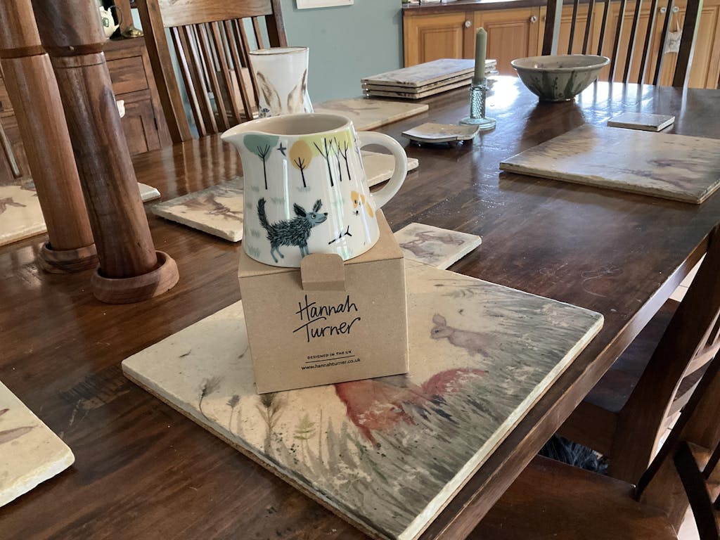 Our ceramic tableware, egg cups and money boxes, are handmade for us in Sri Lanka by a small, family-run company. The ornamental items are handmade in the Wiltshire workshop by Hannah.
