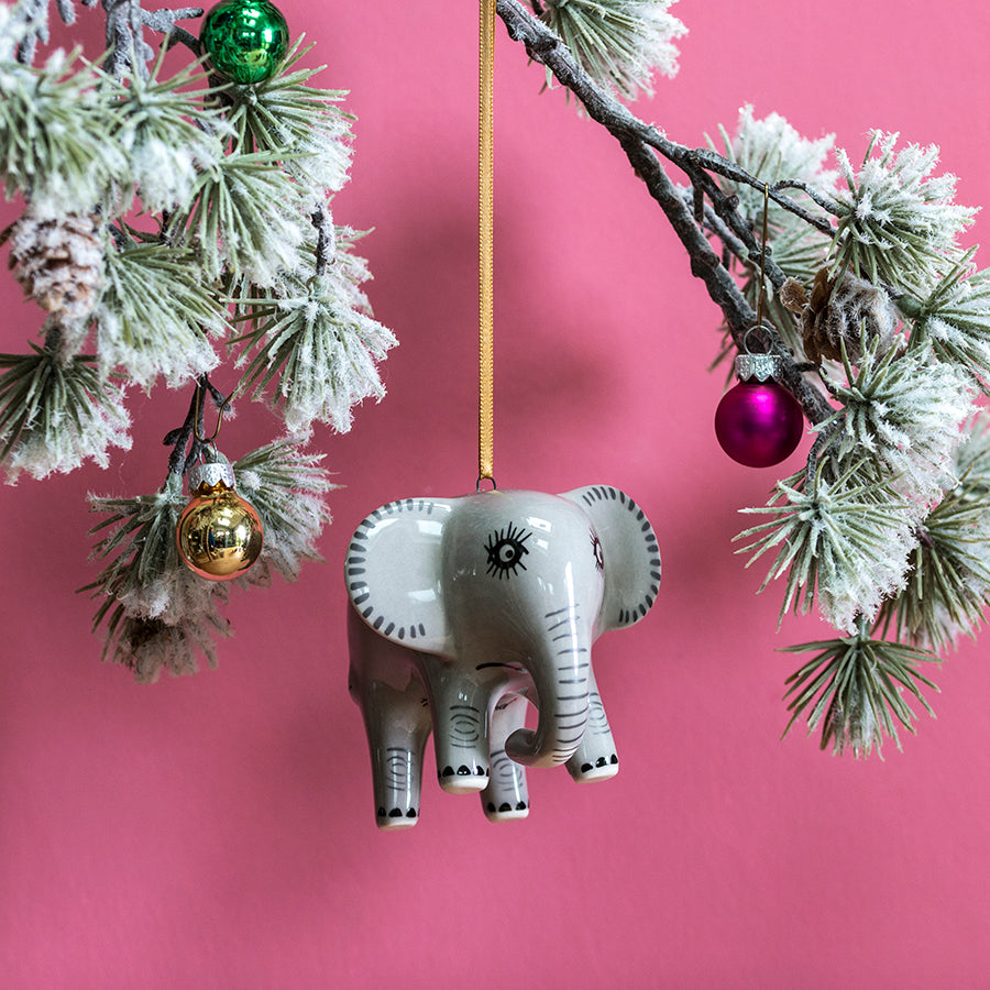 Trumpeting in festive cheer, let this hand-painted elephant bring a little jungle jingle to your Christmas tree. For collectors, our Elephant decoration is part of a whole elephant herd; we also have a Money Box, Salt and Pepper Shakers and an Egg Cup!