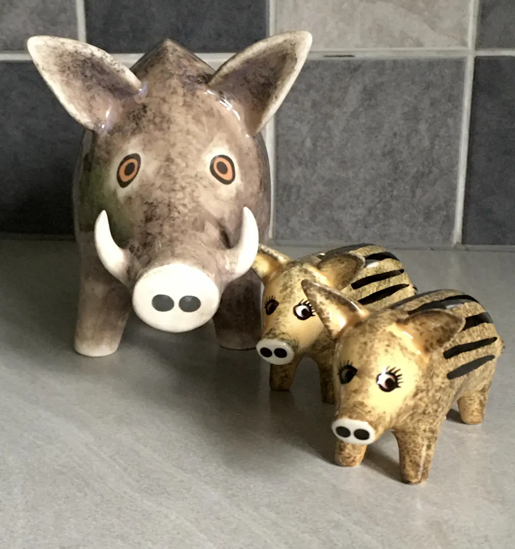 The Wild Boar family includes a Money Box, Planter and some very cute little piglet Salt and Pepper Shakers. Something for every room!